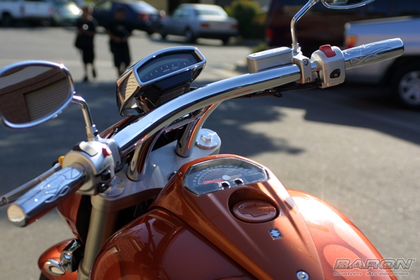 The radius arc softens the look of the conventional drag bar, providing a sweptback styling that emphasizes the contours of your fuel tank